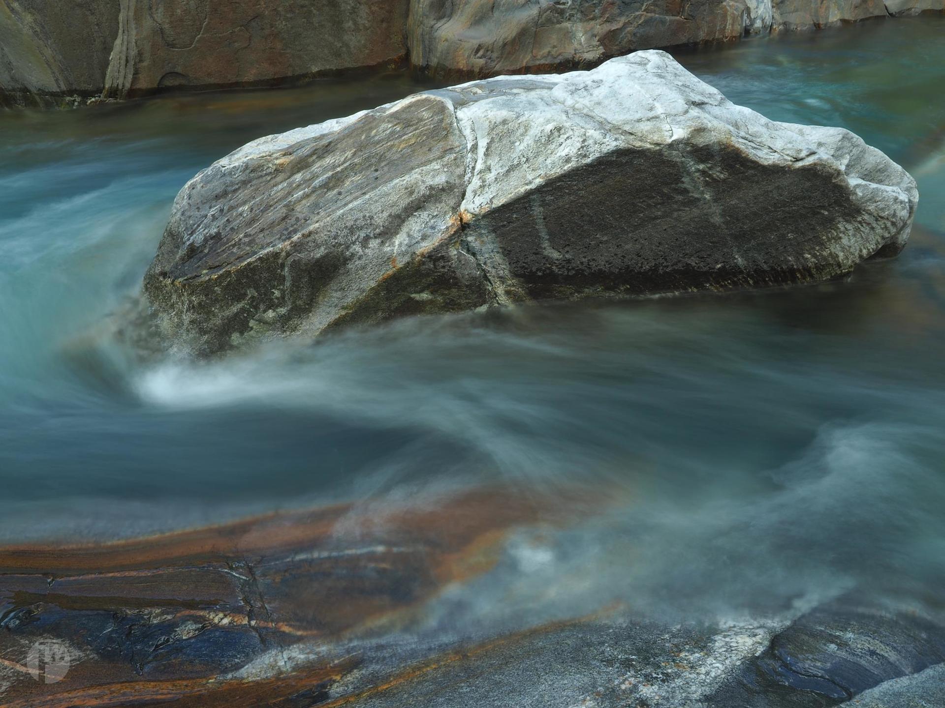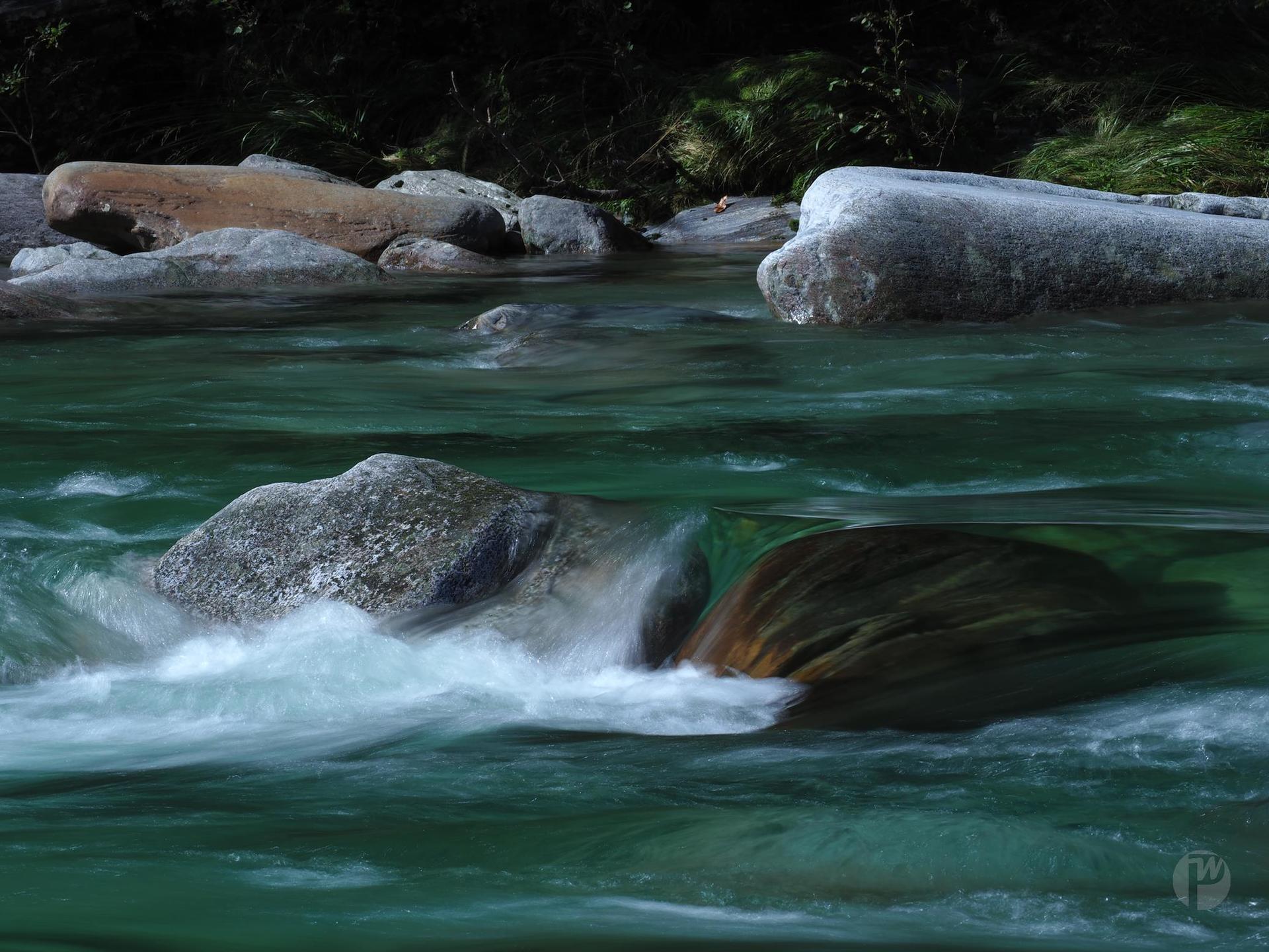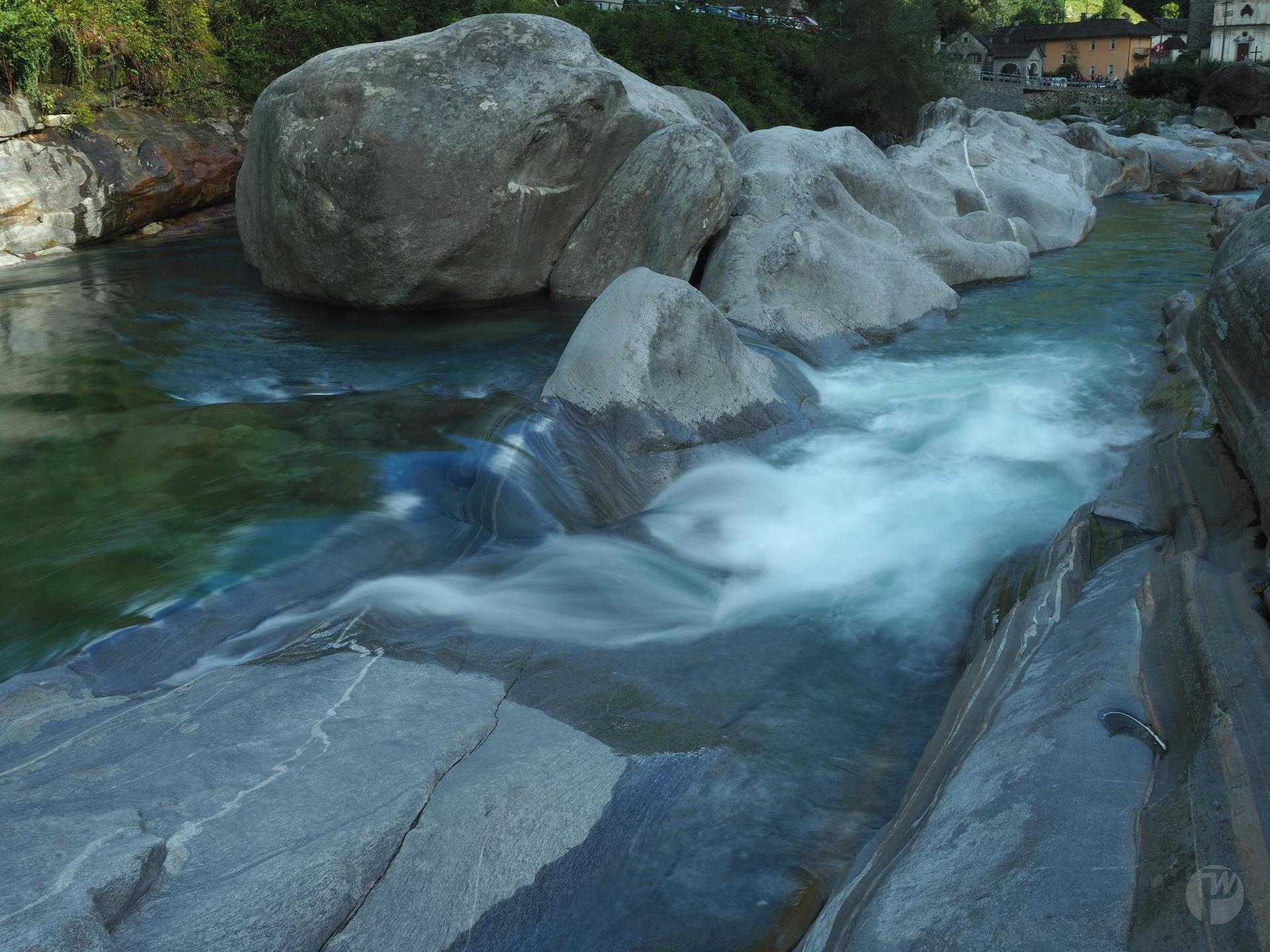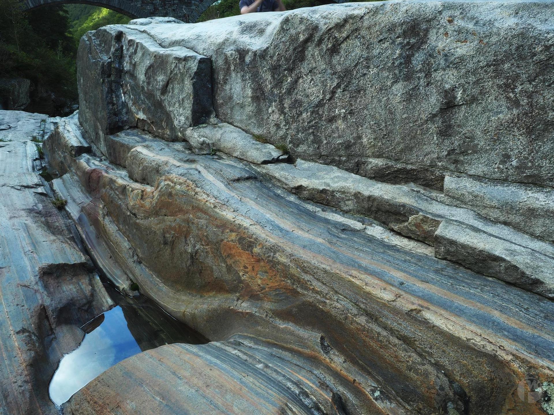 Wunderschön bunte Felsen und je nach Wasserstand unterschiedliche Strömung kann man an der Versasca im Tessin sehen