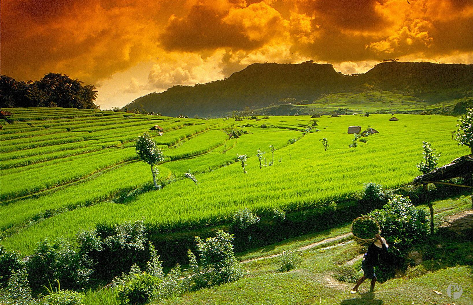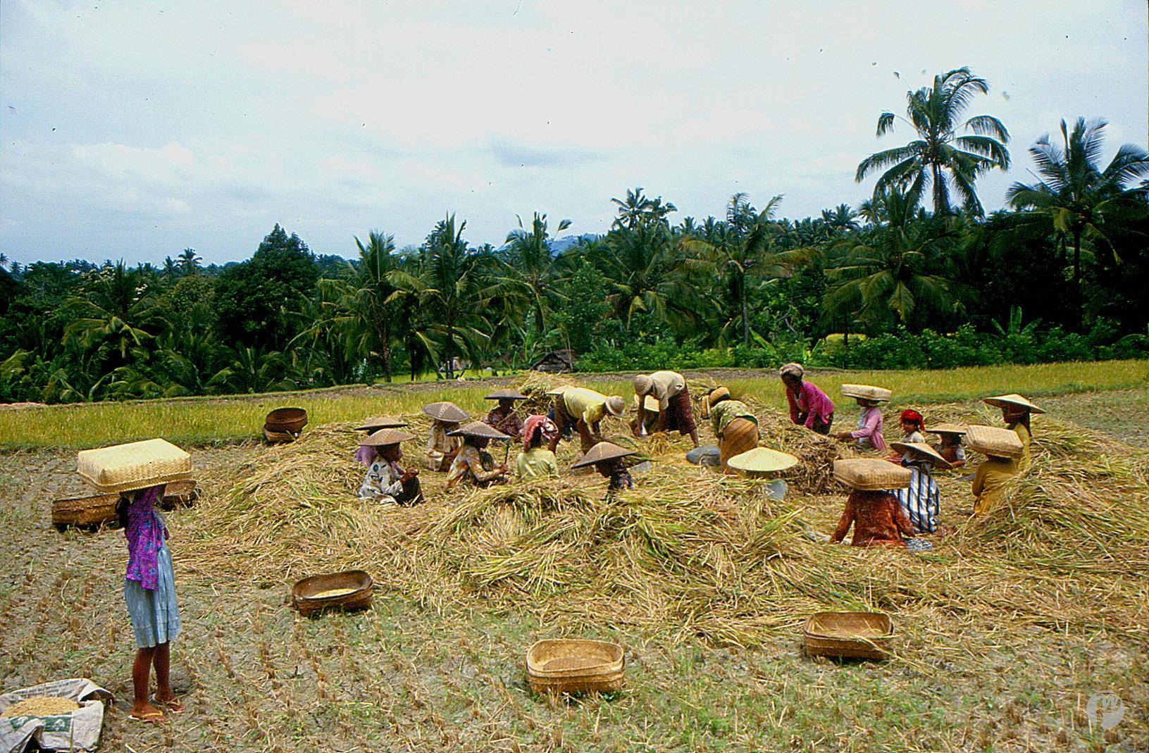 Mehrmals im Jahr wird auf der sehr fruchtbaren Insel der Reis geerntet.