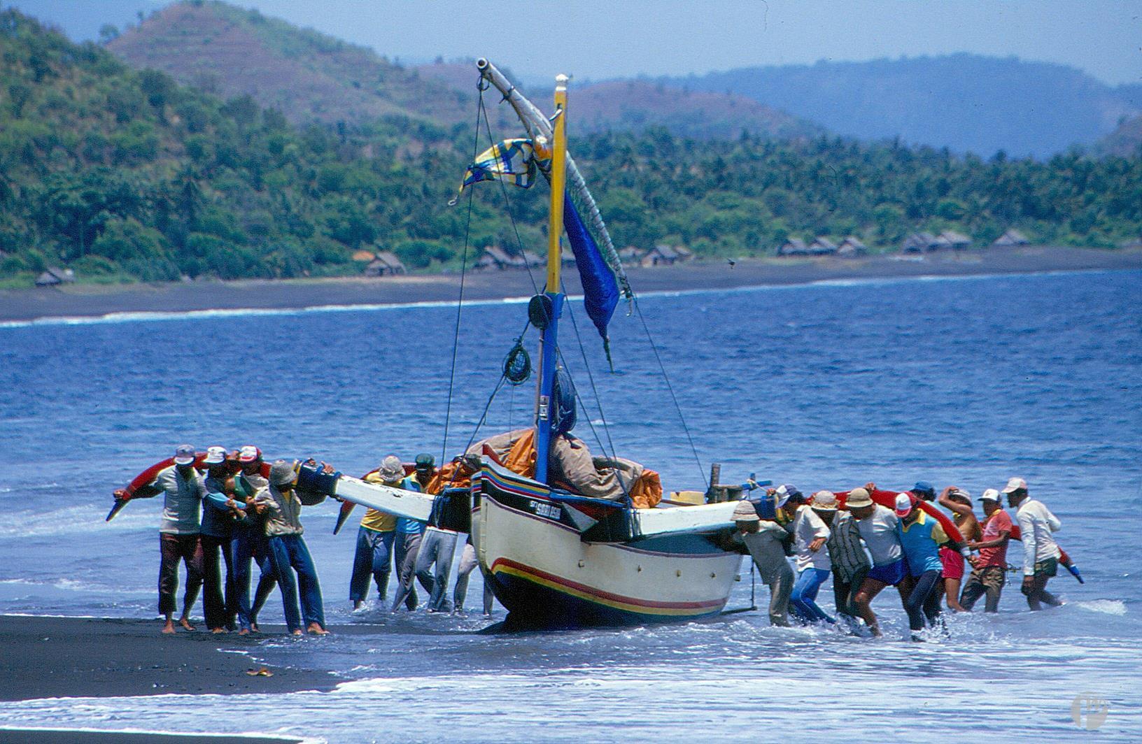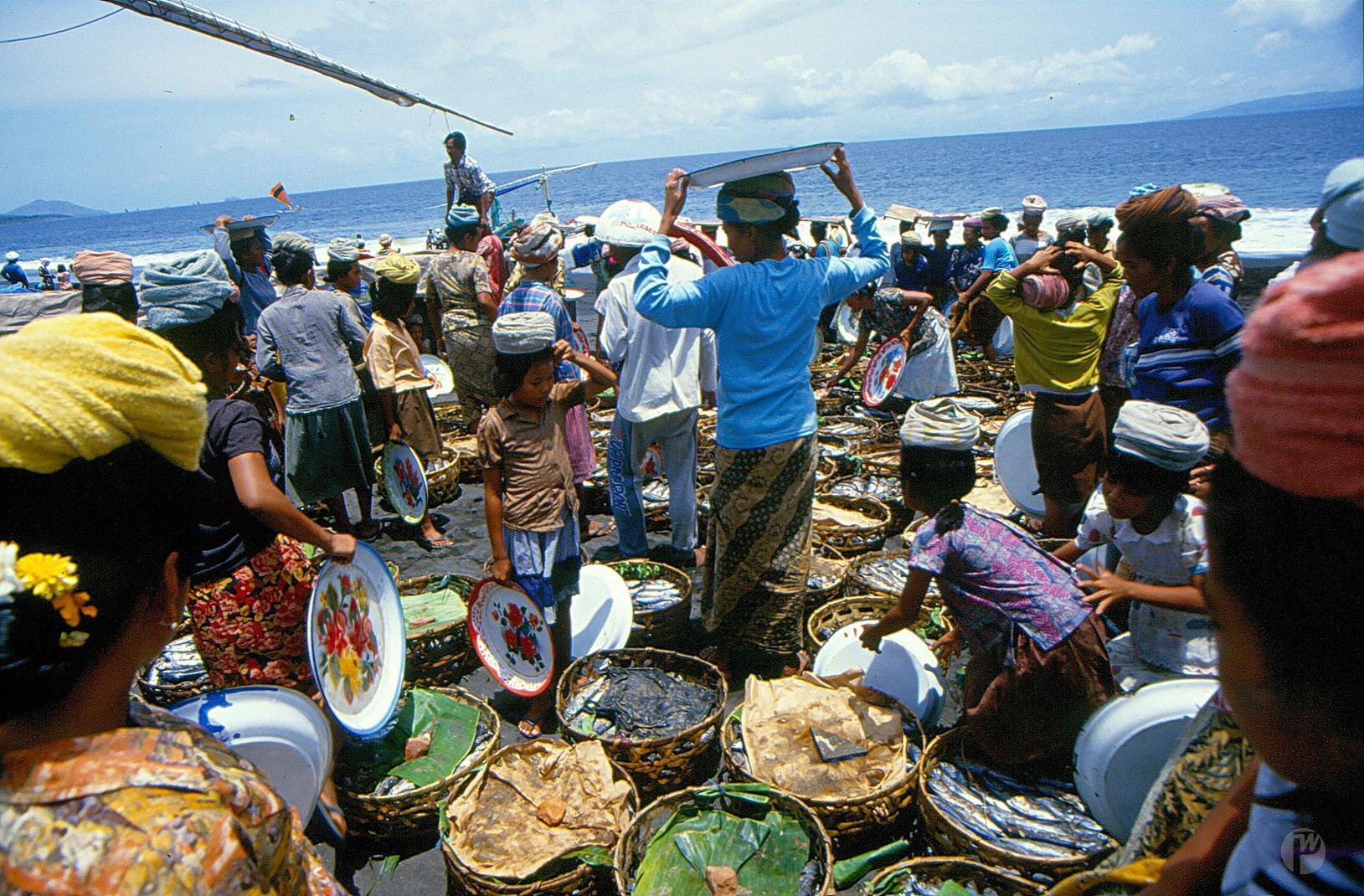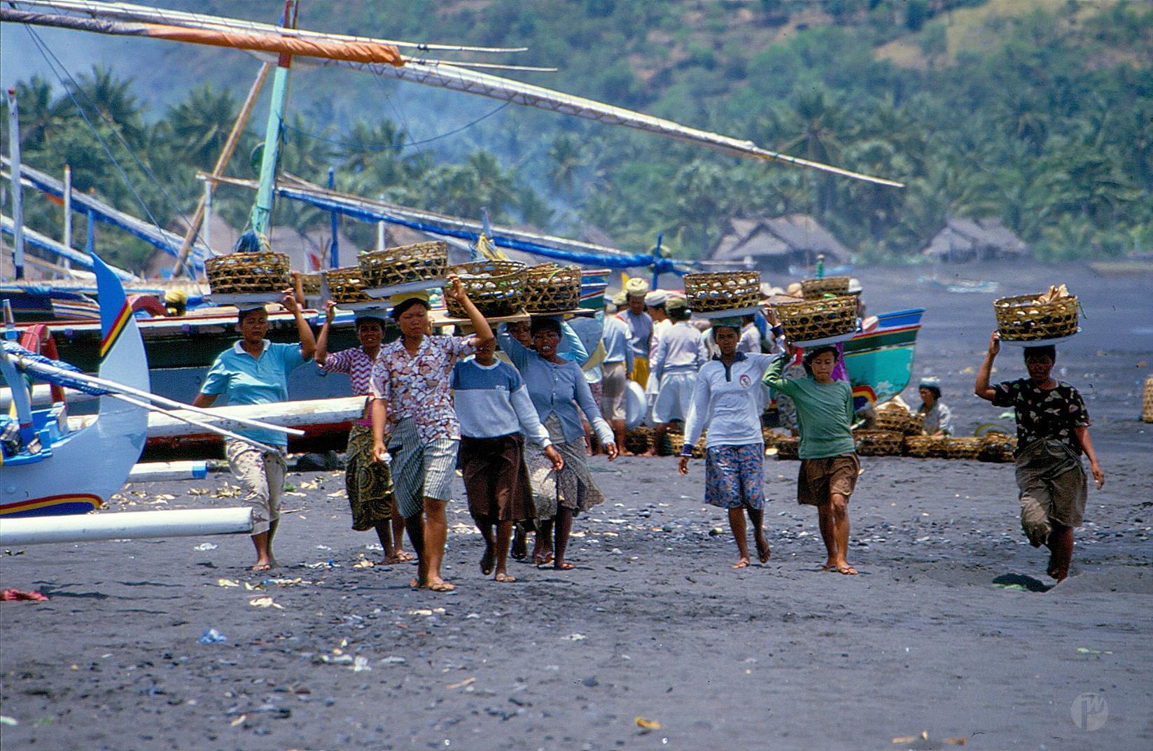 Nachdem die Boote vom Meer zurück sind, wird der Fang verteilt. Das ist immer Dorfgemeinschaftsarbeit.