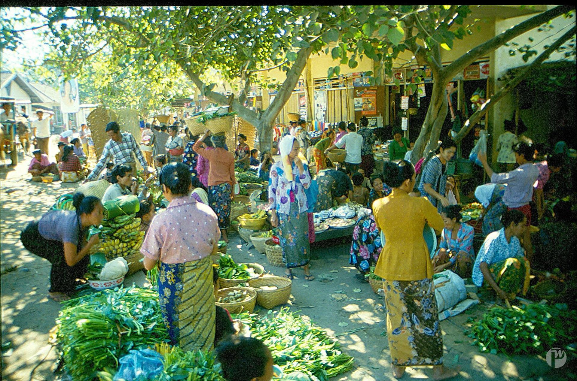 4 Tage dauerte die Besteigung des 3726 m hohen Vulkans Rinjani. Verpflegungskauf auf dem Markt; Übernachtung im Freien ohne Zelt und tolle Aussicht bis zum Gunung Agung auf Bali